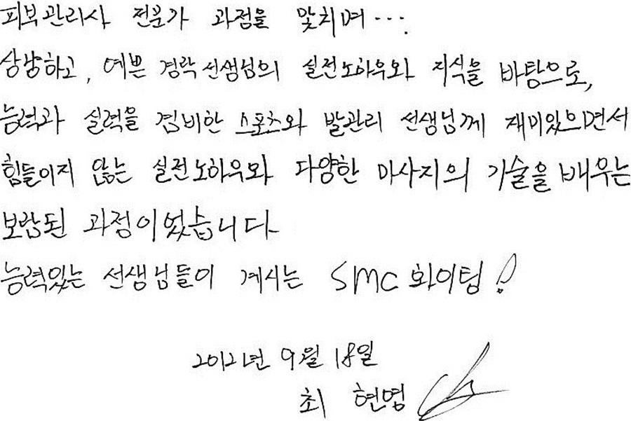 5700 SMC아카데미에서 배웠던 뿌리를 토대로 아로마 마사지 샵을 창업하여 많은 수익을 내고 있습니다 - 이선화원장님    3597