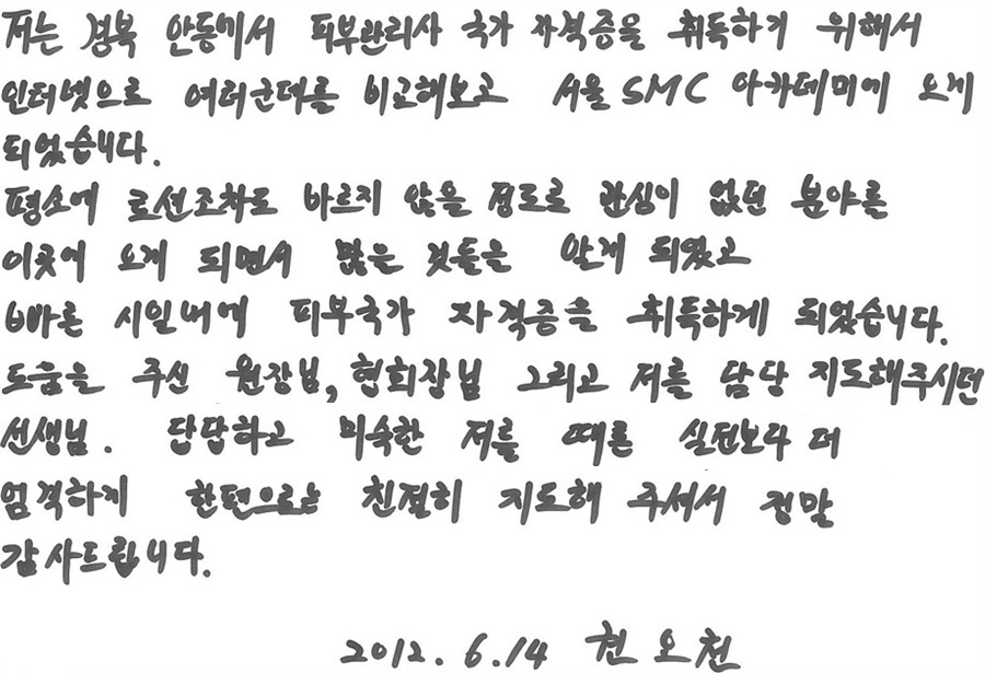 여러군데 비교해보고 선택한 아카데미 - 안동에서 오신 권오천님