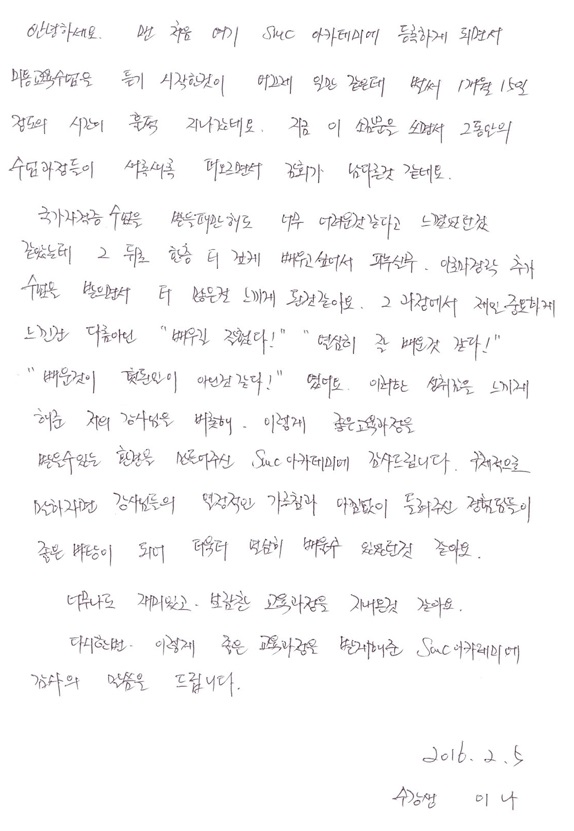 '배우길 잘 했다'는 성취감을 느끼게 해준 SMC - 이나님
