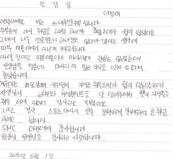 주부에서 재 취업의 도전을 도와주신 SMC아카데미 - 이정미님