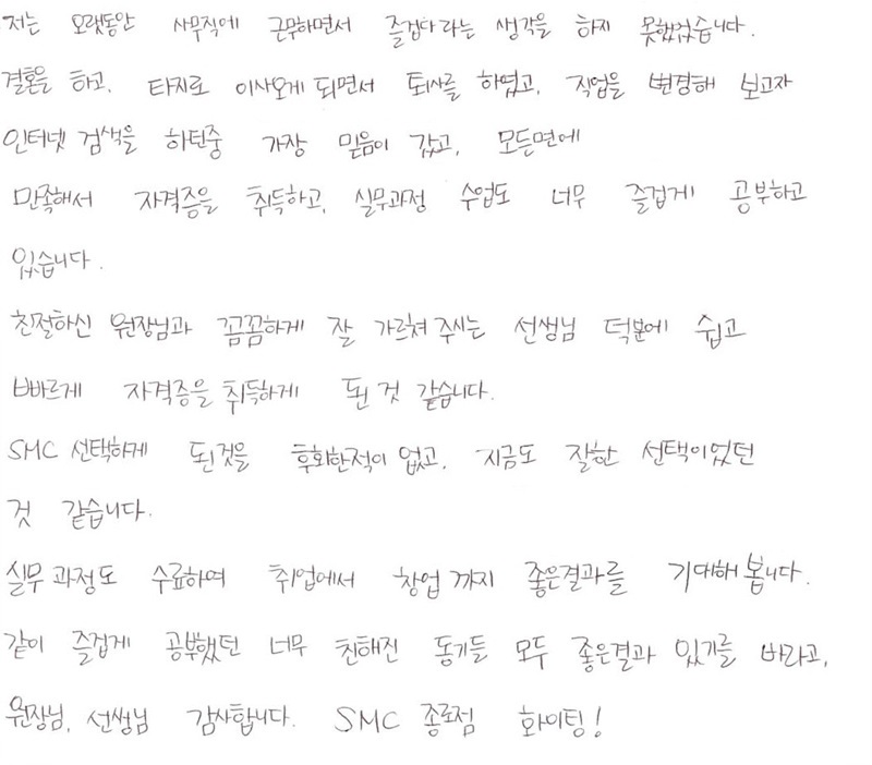 6688 SMC에서 자격증취득후, 취업후 창업까지 월소득300~350의 소득을    유종식 2158