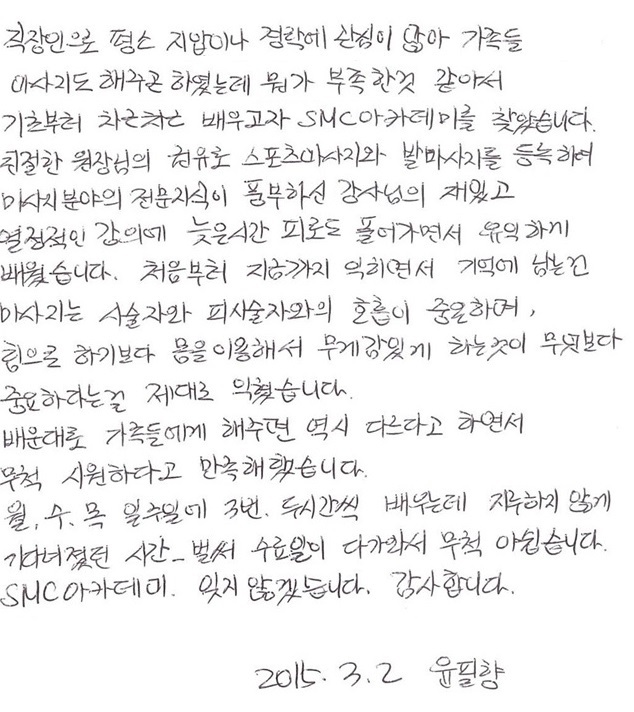 잊지못할 SMC아카데미, 직장인 - 윤필향님