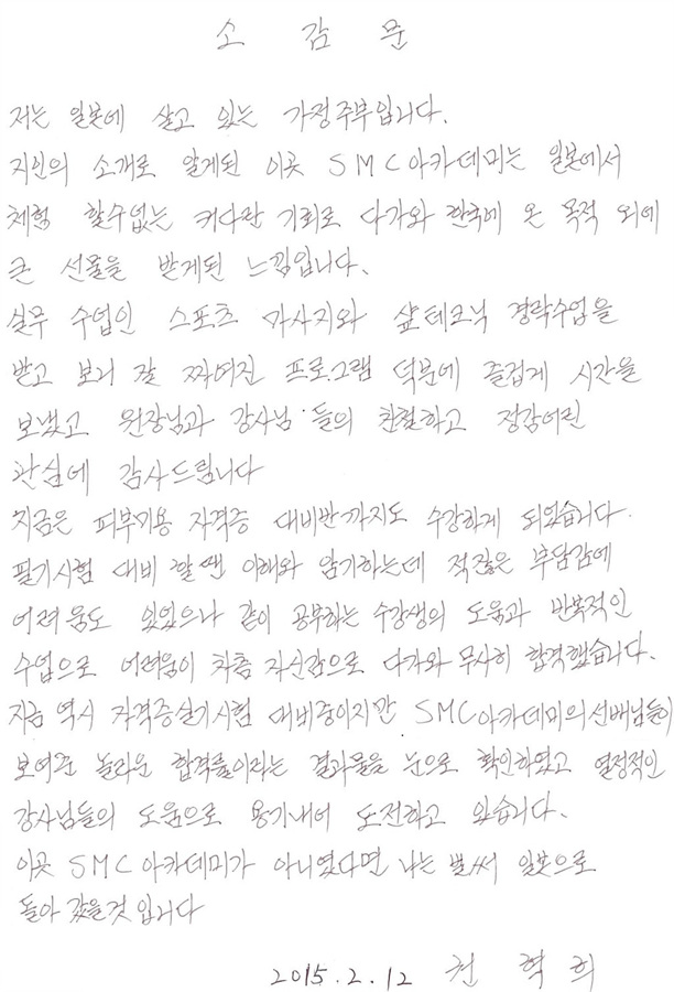 SMC아카데미 본점서울시 종로구 수표로 120 내인빌딩 7층사업자등록번호 : 480-54-00382