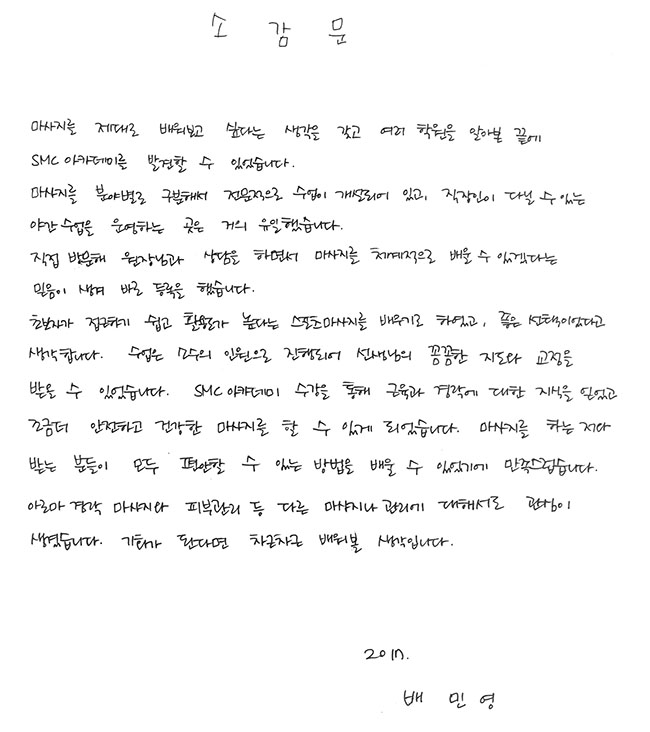 5700 SMC아카데미에서 배웠던 뿌리를 토대로 아로마 마사지 샵을 창업하여 많은 수익을 내고 있습니다 - 이선화원장님    3595