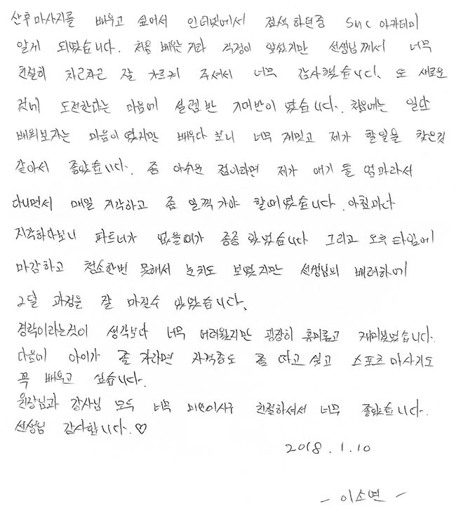 5456 더 열심히 가르쳐 주셨던 윤인은 강사님께 감사합니다. -박정확님    1955