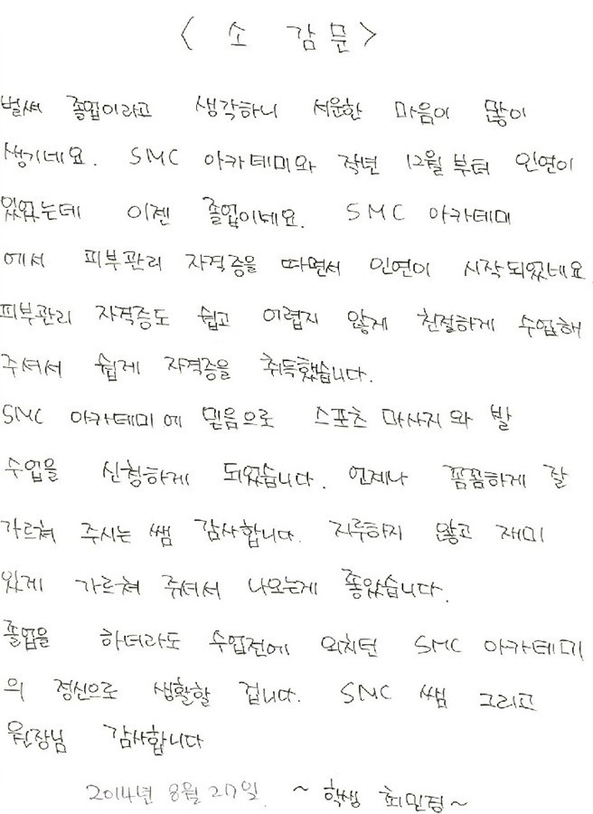 5700 SMC아카데미에서 배웠던 뿌리를 토대로 아로마 마사지 샵을 창업하여 많은 수익을 내고 있습니다 - 이선화원장님    3598
