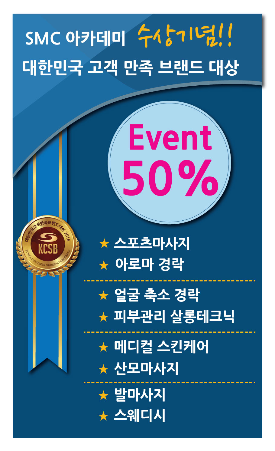 SMC아카데미 대한민국 고객만족 브랜드대상 수상기념 50%이벤트!! |